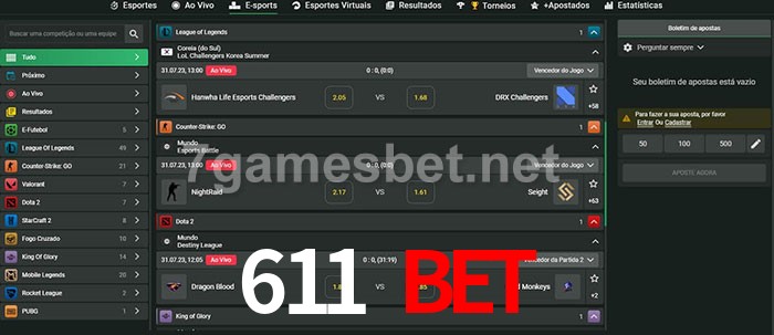O 611 bet oferece uma grande seleção de opções de apostas em e-sports com probabilidades competitivas